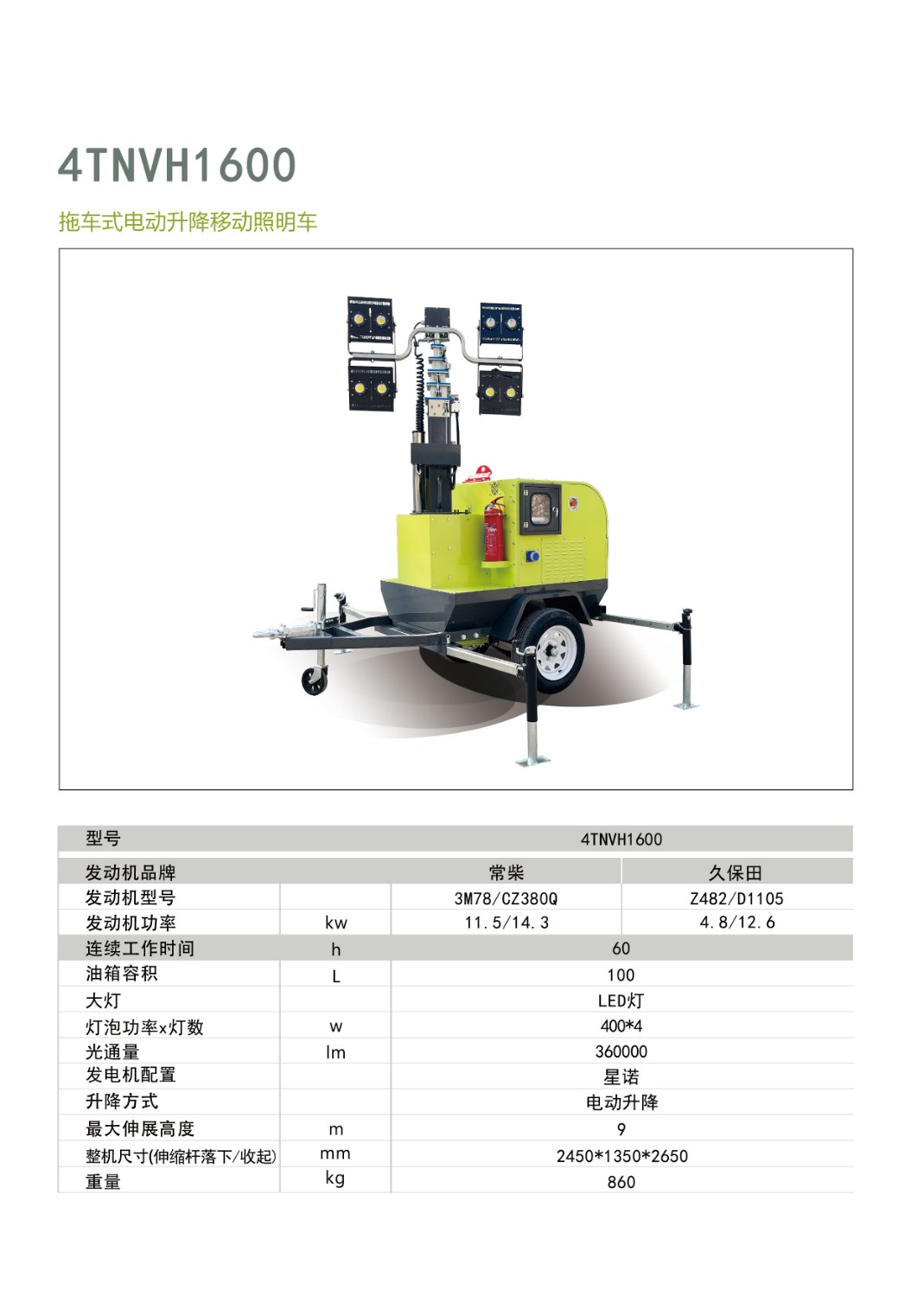 山东云顶yd2223线路检测工程机械有限公司-移动照明车-拖车式电动升降照明车4TNVH1600